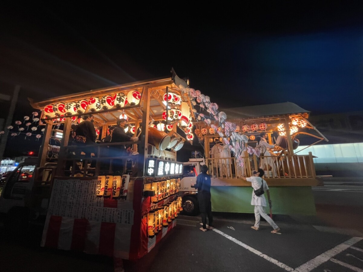 オフィス周辺で太鼓の山車がまわっていました