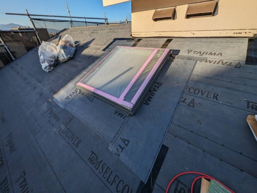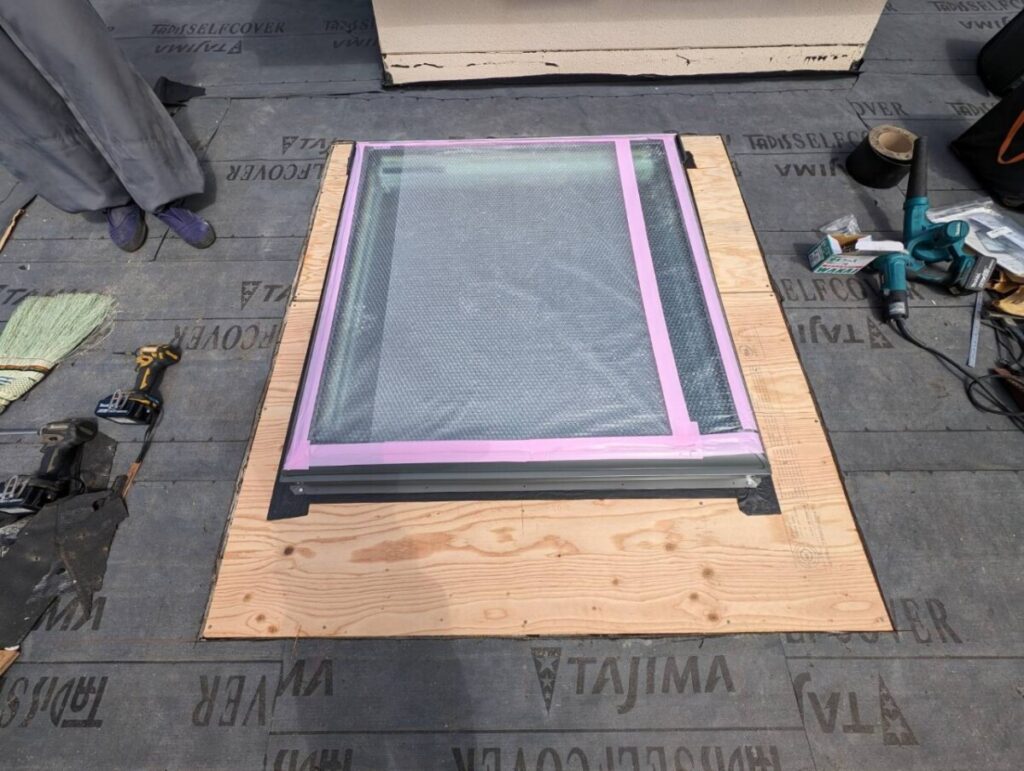 天窓専用のルーフィング(下葺き材)を張り、防水を確保します。
