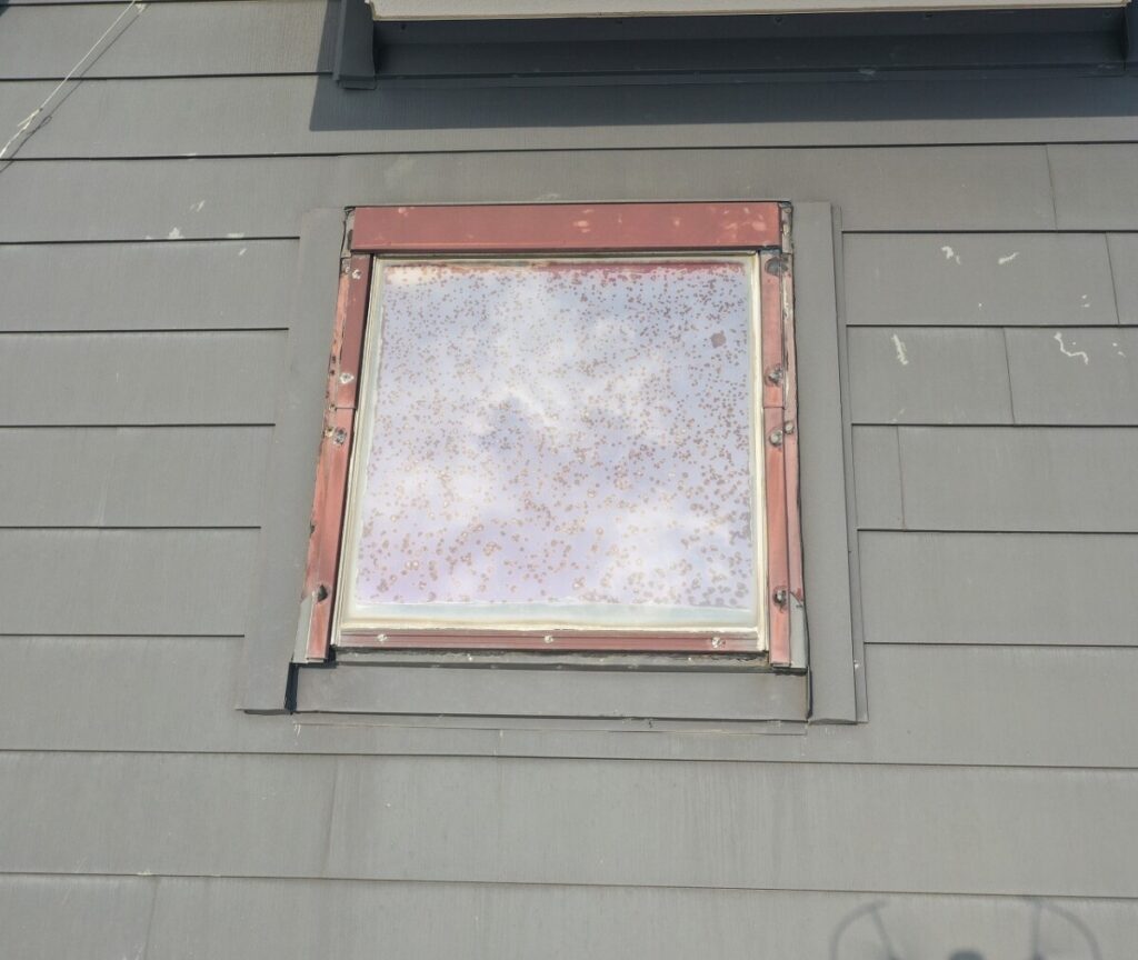お客様から、強風雨時に天窓から雨漏りするというご相談をいただきました。