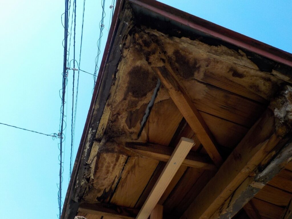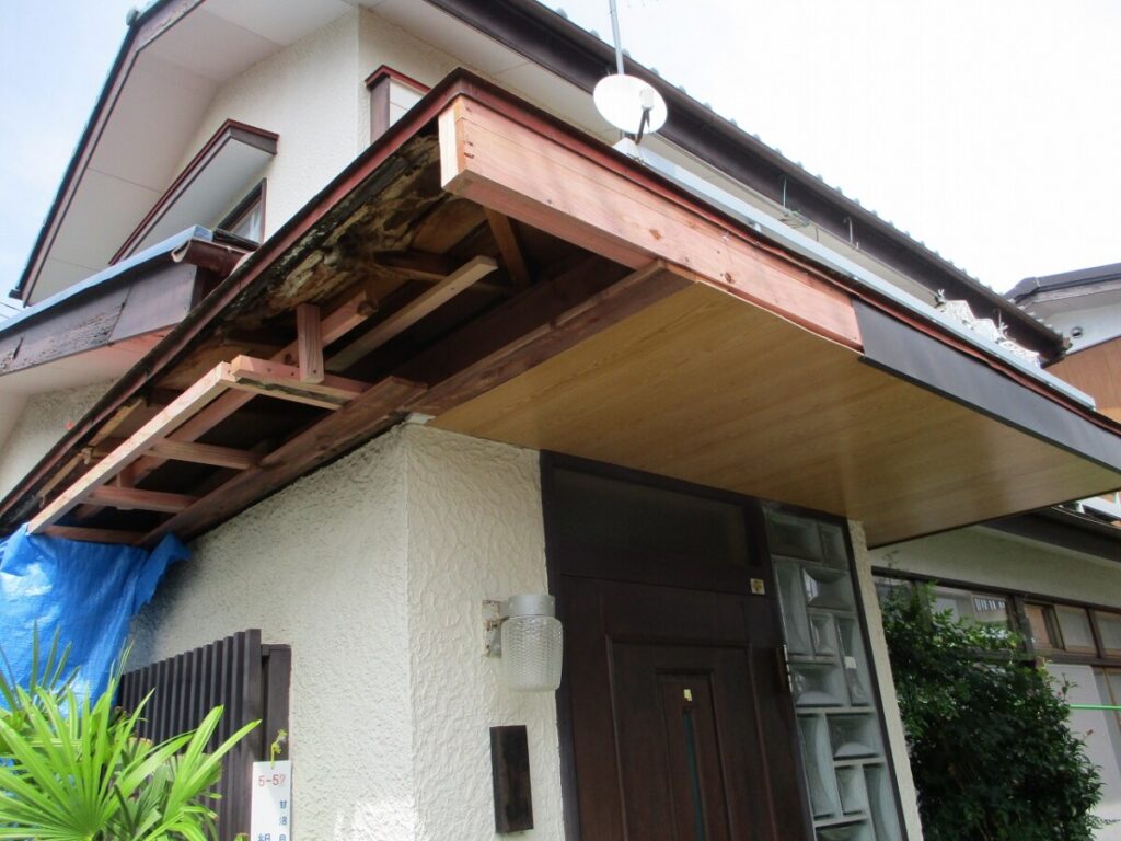 腐食していた軒天は撤去し、 新しく下地を組み直しました。