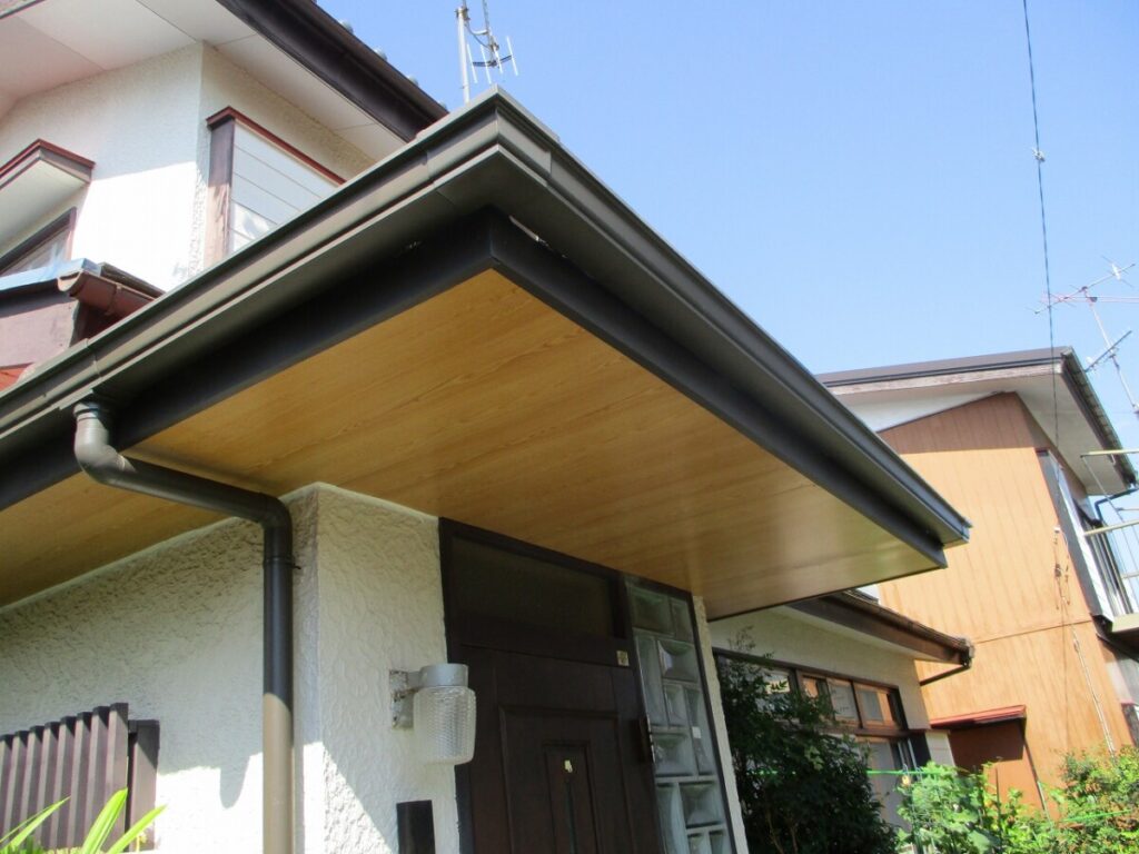 その上からプリントベニアを張り直し、 軒天をきれいに仕上げました。
