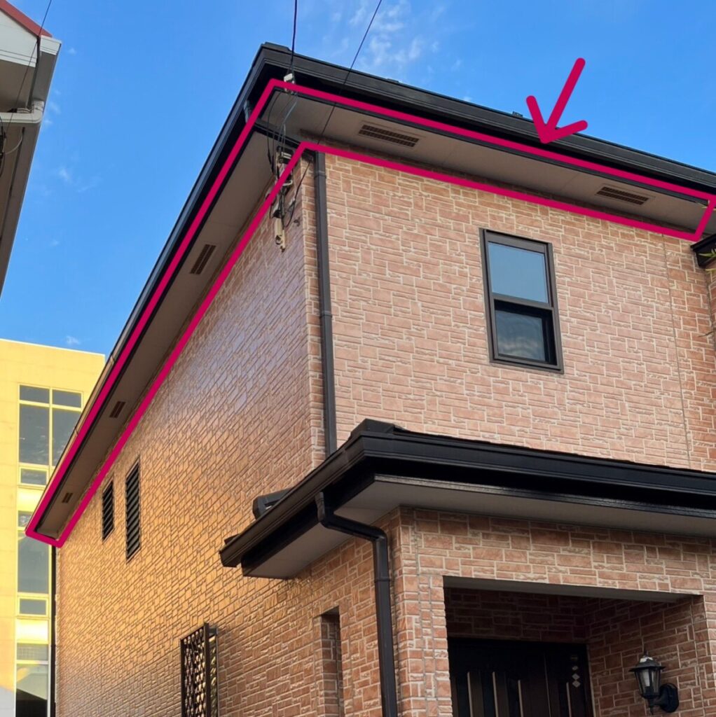 軒天とは、下記写真で赤く囲われた部分です。