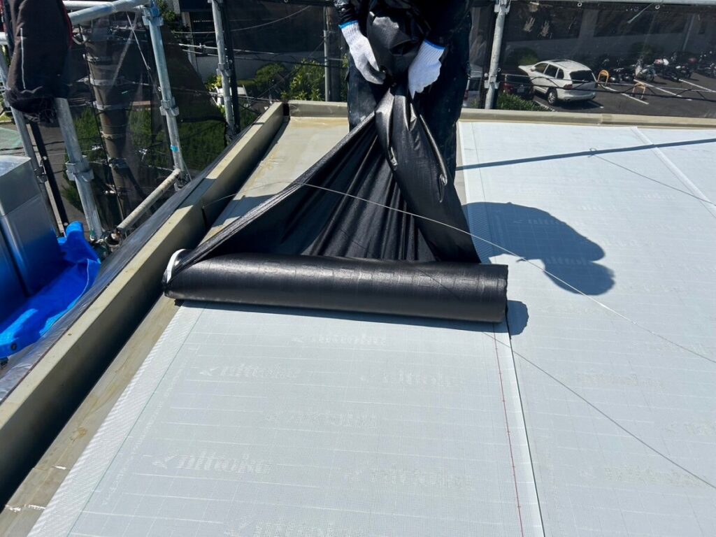 原因となっていた屋上防水の劣化を改善するため、屋上防水工事を行いました。