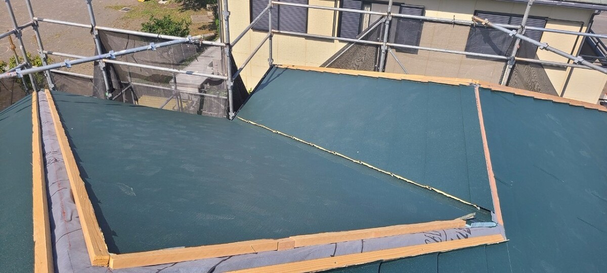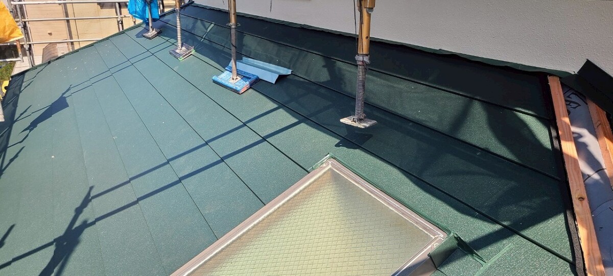 今後のメンテナンスを考え、スーパーガルテクトで重ね葺きを行いました。